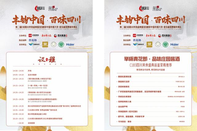 川茶川酒齐上阵,四川省茶文化协会茶艺师莫泽欢、何乾为大家献上精彩的长嘴壶茶艺和台式茶艺表演。作为目前已公布的酱香型白酒中风味成分最丰富的产品,第五代青花郎为大家献上了精彩走秀和品鉴环节。为了川字号农产品的发展和推广,活动现场还将举办四川名特优新农产品智库专家征集启动仪式、“四川好礼”品牌发布仪式以及C183四川丰物·世界品味推广签约仪式。从精选好礼到走向世界,我们将献计献策,推动乡村振兴,携手开创美好未来。