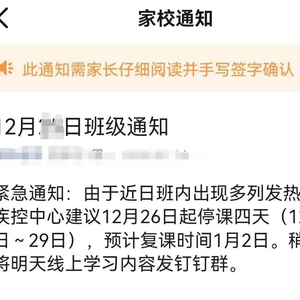 12月26日开始停课,预计4天