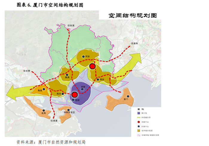 区域发展政策方面,厦门市是中国最早实行对外开放政策的四个经济特区之一、“中国(福建)自由贸易试验区”三片区之一。2015 年国务院印发《关于印发中国(福建)自由贸易试验区总体方案的通知》提出自贸试验区的实施范围118.04平方公里,包括厦门片区43.78 平方公里,重点建设两岸新兴产业和现代服务业合作示范区、东南国际航运中心、两岸区域性金融服务中心和两岸贸易中心。同年3月国家发改委等部门联合发布的《推动共建丝绸之路经济带和21世纪海上丝绸之路的愿景与行动》,明确提出支持福建建设21世纪海上丝绸之路核心区,对福建省和厦门市的发展意义深远。2019年5月福建省发改委发布了《闽西南协同发展区发展规划》,着力构建包括厦漳泉都市区在内的“一核三湾两带两轴”协同发展新格局。