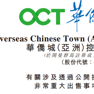 12月27日,港股上市的华侨城(亚洲)披露重大出售事项公告,称公司旗下华侨城上海置地已于2023年12月22日获北京产权交易所通知,通过公开挂牌程序,江苏金峰水泥集团有限公司已成为公司持有的上海苏河湾项目部分资产的中标人。