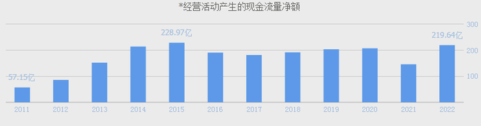 水电业务可观的盈利情况,使得国投电力现金流极为充沛。近年来,公司经营性净现金流表现稳定,由2011年的57.15亿元提升至2022年的219.64亿元。