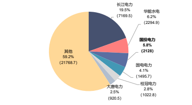 在2022年年末,国投电力水电控股装机量达2128万千瓦,占全国水电装机总量的5.8%,在主要上市公司中排名第三位。