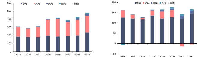 新能源方面,2017年以来公司风电、光伏装机量增长加速,近5年CAGR达32.1%,风光装机占比由2017年的3.6%提升至2022年的12.2%。