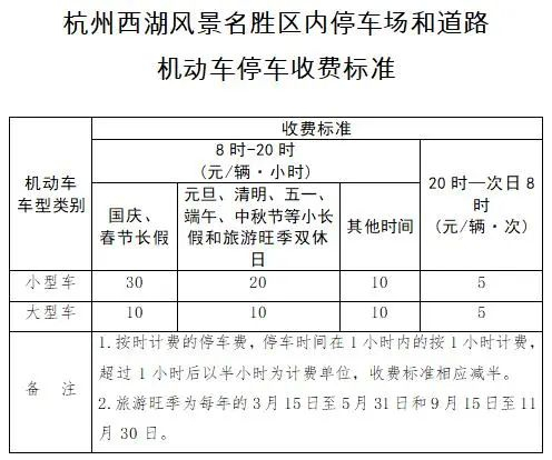 根据杭州市物价相关规定,元旦小长假期间(2023年12月30日-2024年1月1日),西湖景区价格浮动的政府定价停车场收费标准有所调整,具体如下: