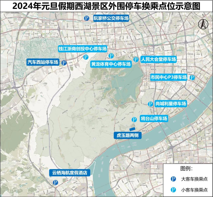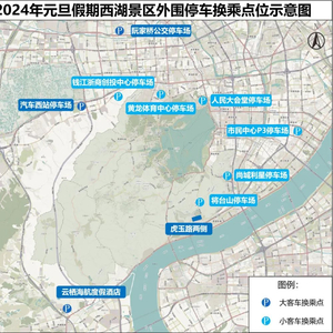 2.景区外围的市民中心P3停车场、黄龙体育中心停车场、人民大会堂停车场、钱江浙商创投中心停车场、尚城利星停车场、将台山停车场等6处停车场提供停车换乘和公交接驳服务,游客可就近选择停放,换乘公交、地铁。