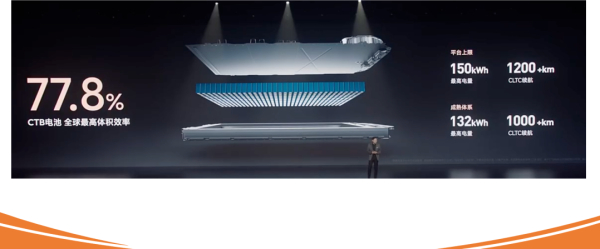在这一高压平台上,电池包的容量上限能够达到150度,CLTC续航里程超过1200公里。