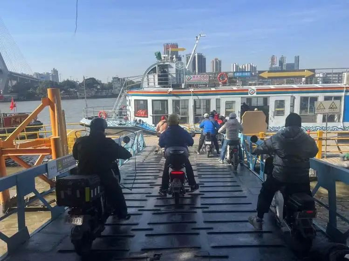 12月25日上午,上游新闻记者来到广州客轮白蚬壳码头发现,这里的市民大都骑行电动自行车,因无法通行航线上方的鹤洞大桥,所以选择坐轮渡。