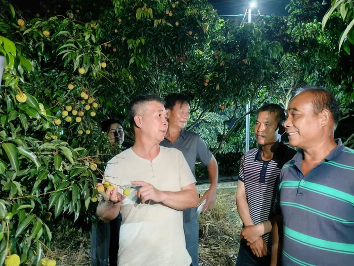 每晚7:30亮灯,次日上午6:00关灯,将光照强度覆盖在一定区间,统一利用物理光照防治害虫,直至收获,期间不施用任何杀虫剂。一个月后,古雅良和团队成员惊喜地发现,这20多株荔枝树一个“虫粪果”都没有!而这一个月里,古雅良和团队成员不知有多少个日夜寝食难安,荔枝树下走过的身影和留下的脚印,亦在一个个万籁俱静的夜晚里闪闪发光。