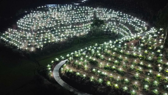 一百多年后,中国广西的农业科研人员发明了“光驱避”法防控荔枝蛀蒂虫技术,将电灯挂在了荔枝树上。