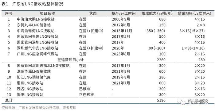 1 广东省天然气发电及进口LNG状况