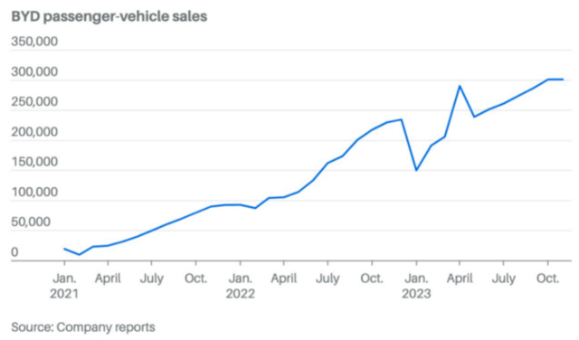 比亚迪还有其他增长机会,特别是当它成为一家更加全球化的公司时。截至11月,该公司出口量超过20万辆,几乎占乘用车总销量的8%,是2022年同期销量的四倍多。赖指出,国际市场的利润是本地销量的2-3倍。比亚迪将能够保持强劲的盈利能力。