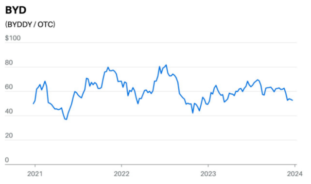 2023年是特斯拉(TSLA)股价狂奔的一年。到了2024年,比亚迪(BYDDY)有望成为表现更好的电动汽车股。