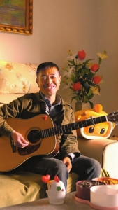 几个小时之前,在家里,坐在能晒到夕阳的客厅,“三品大叔”弹起《同桌的你》,这是他会弹唱的第一首歌,有着特别的意义。