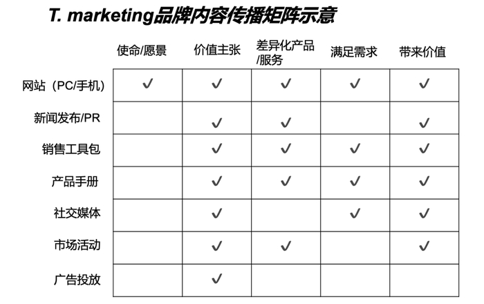 在不同的场合,价值主张的重点也可以有所区分,以下矩阵作为示意。