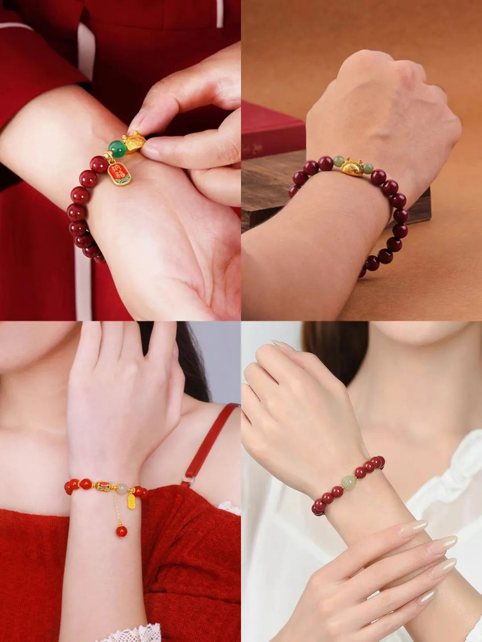 佩戴朱砂/红玛瑙手串的寓意美好温馨,自带吉祥,送礼亦表情深义重。