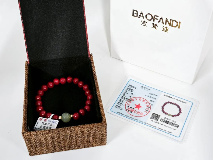 宝梵迪家的每一款手链,都出具有正规的鉴定证书,一物一证,一证一码,扫码可查。