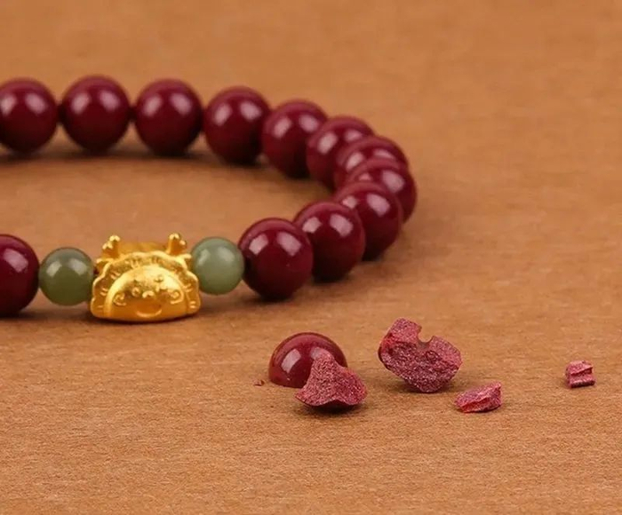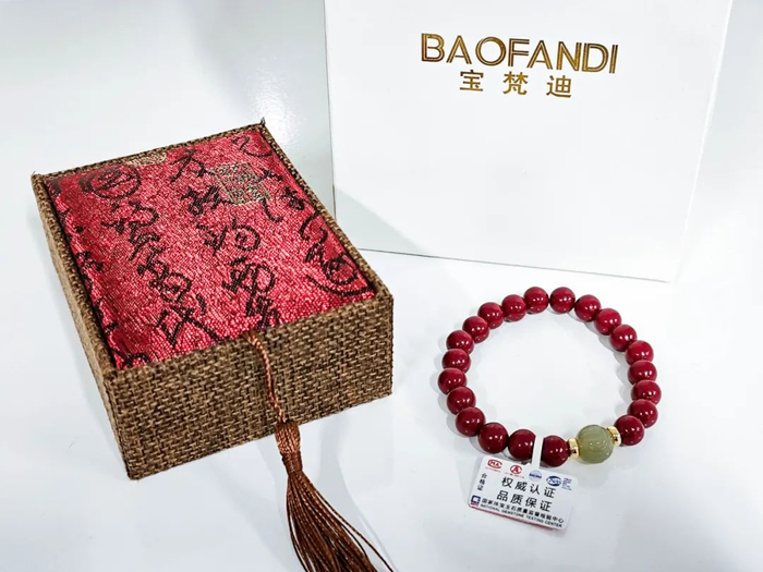 而佩戴朱砂手串的则有寓意美好、自带吉祥的说法,送礼亦表情深义重。