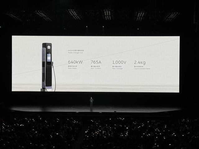在2023蔚来NIO Day上,蔚来汽车的创始人李斌发布了全新的640千瓦全液冷超快充桩。这款充电桩具备最大功率640千瓦,最大输出电流765A,最大输出电压1000V,并且采用了业界最轻的液冷充电枪线,仅重2.4千克,即使是女性用户也能轻松携带。据悉,这款充电桩将于明年4月开始布局。