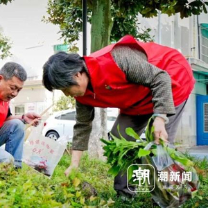 离退休干部社区上岗清理小区杂草。图片由受访者提供