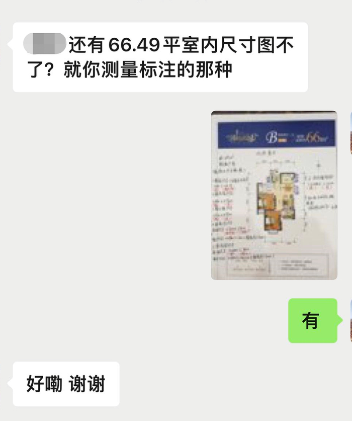 这时,他们会收到他发来的一张户型图。