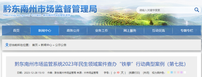 贵州省黔东南州市场监管系统2023年民生领域案件查办“铁拳”行动典型案例(第七批)