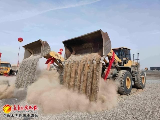 12月28日,在G30连霍高速哈密服务区,G30连霍高速星星峡至哈密段、哈密至吐峪沟段两个改扩建项目开工仪式上,挖掘机破土动工,拉开了建设的帷幕。记者马婷摄