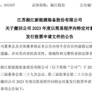 关于撤回本次以简易程序向特定对象发行股票申请文件的主要原因,振江股份表示,自公司决定开展本次融资以来,公司与中介机构积极有序推进相关工作,鉴于目前资本市场行情及政策变化情况、公司资本运作计划等诸多因素,经公司审慎考虑,公司决定向上海证券交易所申请撤回公司2023年度以简易程序向特定对象发行股票的申请文件,并将根据市场情况适时重新申报。
