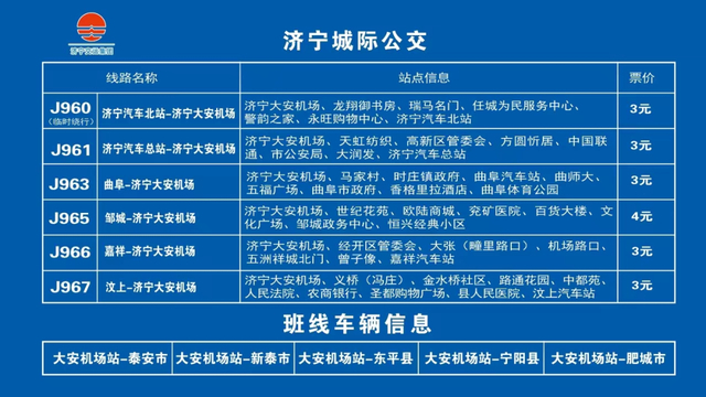 优化调整大安机场至济宁主城区和相邻县市区共6条城际公交专线,专线票价继续执行城际公交价格,优化站点设置,提高运行效率,方便群众出行。