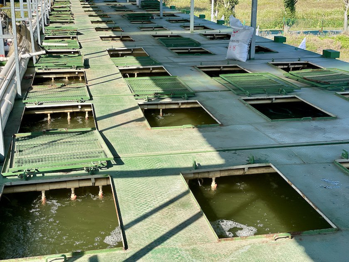 “因为塘泥里的土臭素,池塘养的鱼或多或少都有腥气。”盒马村负责人、观星农业董事长舒锐说。而该基地池塘则被分割成不同的区域,其中面积最大的作为水源,从中抽出来的表层富氧水经过杀菌处理后,才会流入鱼苗们生长的养殖箱。