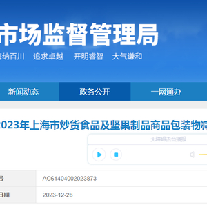 近期,上海市市场监督管理局对本市食炒货食品及坚果制品进行了商品包装监督抽查。本次抽查了60批次产品,经检验,未发现不合格。