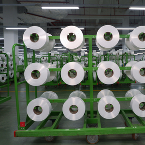 高度自动化的芮邦科技生产车间里,工人将一包包由废弃塑料瓶制成的原材料吊装到流水线上,送进螺杆挤压机中熔融,经过粗过滤、匀化反应、精过滤后,运输到纺丝的设备中,进行喷丝头拉伸、冷却与上油,再出来时已经是喷成一根根的高品质再生涤纶长丝,缠绕到线轴上,由再生纤维卷成的洁白丝锭在车间里堆积如山,在灯光的照耀下折射出银色光泽。这些再生DTY(全拉伸丝)长丝或FDY(拉伸变形丝)长丝经过深加工成各类织物,被广泛地运用于服饰、家纺、建筑以及交通运输等领域。