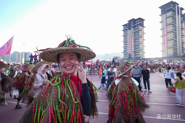 9月16日,在贵州“村超”球场,村民身着挂着特色产品的蓑衣入场。