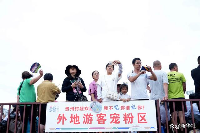 6月23日,在贵州“村超”球场,人们在外地游客宠粉区观看民族文化节目。