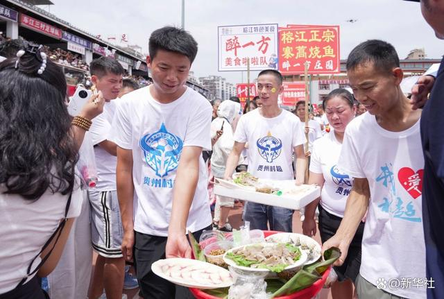 8月13日,在贵州“村超”全国美食足球友谊赛球场,村民带着自产美食入场。
