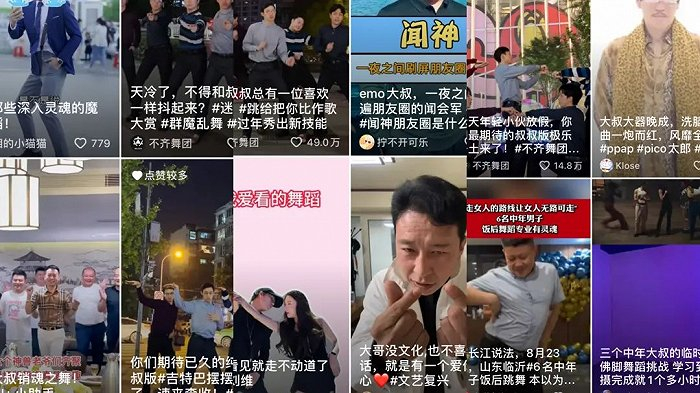 闻神爆火过后,抖音上出现了众多中年男人伴随热门BGM跳着搞笑舞蹈的视频。在这些视频下方,充斥着的不再是一个圈层对另一个圈层的窥探与好奇,而是“我不敢再笑了,因为我上一个笑过的人叫闻会军”。