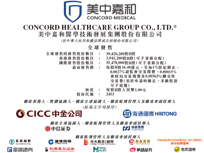 美中嘉和,计划全球发售3942.02万股H股,其中90%为国际发售、10%为公开发售。每股发售价介乎14.10~16.40港元,每手200股,最多募资约6.465亿港元。
