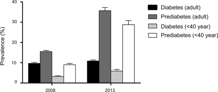 近年中国的研究数据揭示了另一种引人关注的趋势:自 2008 年以来,糖尿病在年轻人群中的发病率有所上升(见下图)。尽管从 2013 年到 2018 年,这一增长趋势并未继续,但这并不意味着问题已得到解决......