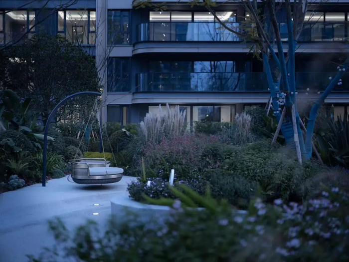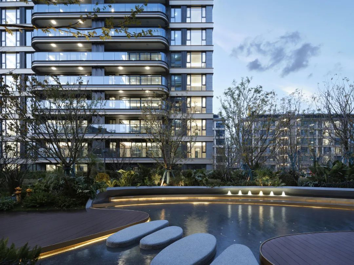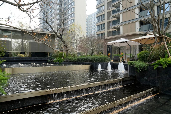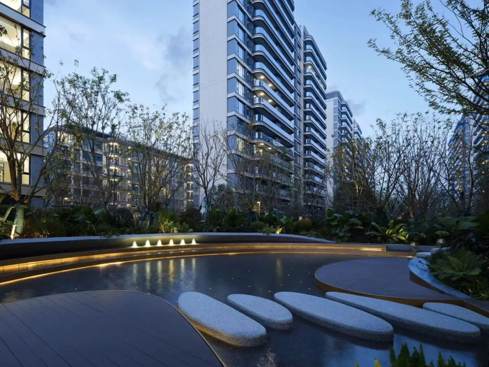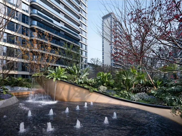 香港置地对产品交付的执拗把控力,近乎1:1还原设计图,大到公区空间、立面呈现,小到园林造景、迭步水景,甚至考虑到四季有景的植被选种......细节末节之处的用心,充满趣味性的情绪价值。