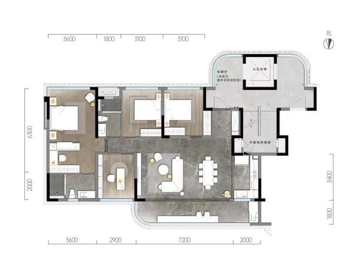 天湖翠林产品力亦可圈可点。以建面约143㎡户型为例,配置有约7.2米横厅,一体式LKD厅设计放大了公区的社交功能,且得益于套四布局,几乎能覆盖所有家庭结构。