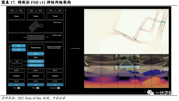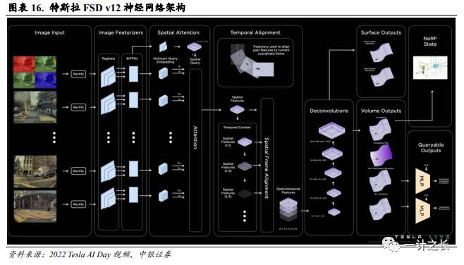 FSDV12神经网络取代传统分模块设计。特斯拉宣布已开始向员工推出完全自动驾驶(FSD)V12版本。特斯拉FSD V12使用全球各地数百万特斯拉车身视频作为训练材料来模仿人类司机的驾驶决策,采用“光子进入,控制输出(photon in, controls out)”。目前常见自动驾驶系统多采用分模块设计,即分为感知、决策、控制三个模块。车辆通过传感器感知周遭环境,确定车辆位置、速度、加速度,并根据识别出来的语义进行行驶路线的规划和横纵向的决策,最后通过转向和制动机构控制车辆行驶,各任务内部采用各自的算法模型,感知、决策与控制之间界限明确。而特斯拉将规划和控制由代码改成了神经网络形式,与感知层的神经网络合并成了一个大网络,仅利用一套神经网络就能处理所有输入信号,并输出驾驶决策。