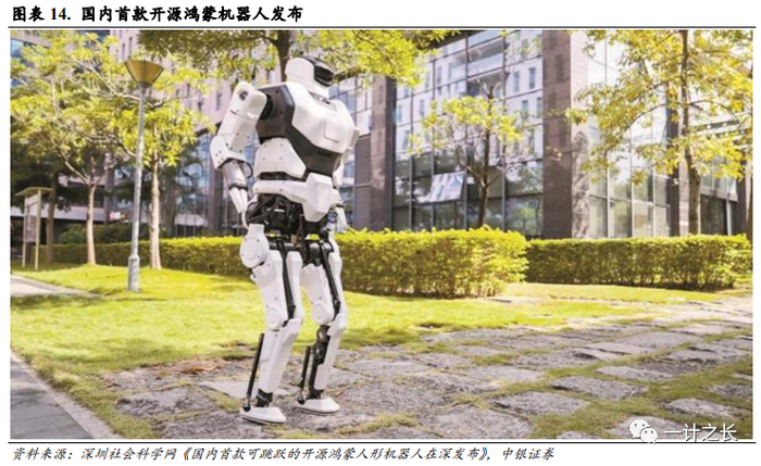 国内首款开源鸿蒙机器人发布。12月5日,国内首款可跳跃的开源鸿蒙人形机器人在深圳发布,该款机器人人形机器人KUAVO(夸父)由乐聚自主研发,重量约45kg,全身自由度26个,步速最高可达4.6km/h,快速连续跳跃高度超过20cm,是国内首款可跳跃、可适应多地形行走、并且可实现量产的开源鸿蒙人形机器人。目前,夸父已进入全面量产阶段,并在科研教育和特种作业领域率先实现商业化落地。乐聚机器人也有望因此成为国内首家实现大机器人量产交付单位。