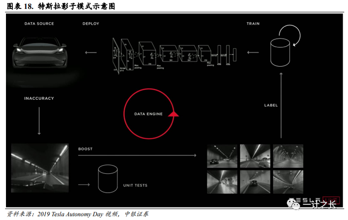 具备核心数据积累,影子模式有望支撑神经网络加速训练。特斯拉影子模式的运作方式是在有人驾驶状态下,运行自动驾驶系统和传感器,系统虽不参与车辆控制,但仍持续进行模拟决策,并把决策与驾驶员行为进行对比。两者不一致时,系统将场景判定为“极端工况”,进而触发数据回传。因而特斯拉的使用用户越多,收集的数据就越多。