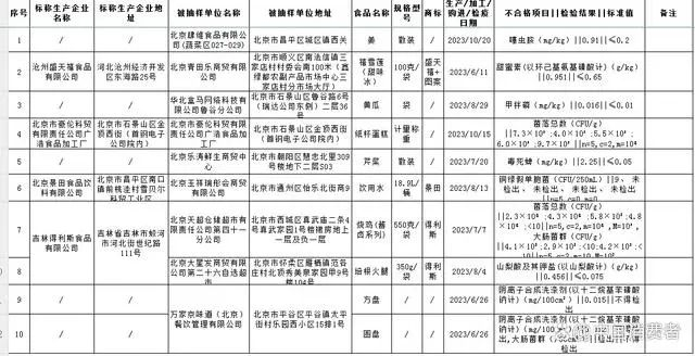 12月13日,北京市市场监督管理局发布2023年第73期食品安全监督抽检信息,组织抽检食糖、蔬菜制品、蜂产品、食用农产品、冷冻饮品、肉制品、糕点、饮料、餐饮具共820批次,其中合格810批次,不合格10批次。