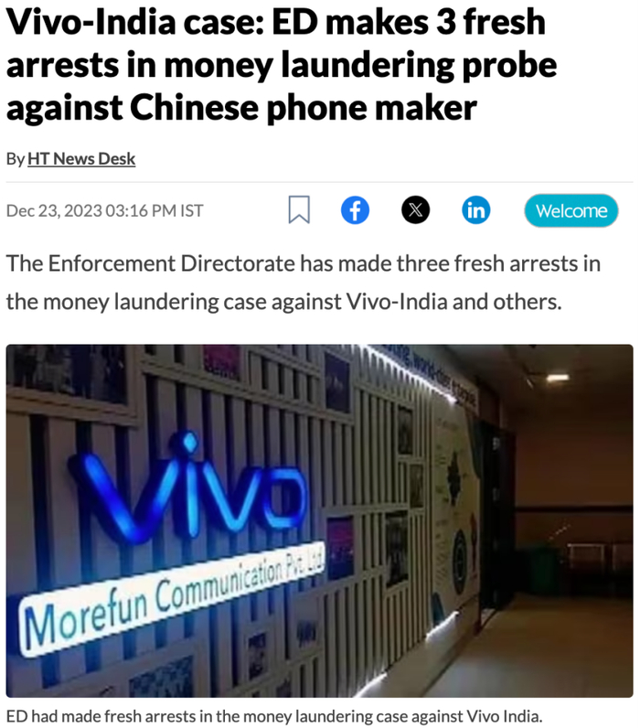 当地时间12月23日,有媒体消息称,印度执法局日前再以“反洗钱调查”为由拘捕多名vivo印度公司高管,其中包括vivo印度公司临时CEO(首席执行官)和CFO(首席财务官)。vivo印度发言人对此事公开回应称,最近的逮捕行动表明骚扰行为仍在继续,给整个行业带来不确定性,vivo将坚决利用一切法律途径来解决和挑战这些指控。