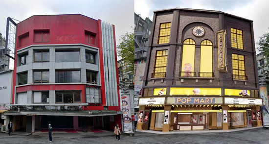 钻石型独栋建筑成为了泡泡玛特的“画布”,利用楼层原本的外部结构进行丰富的细节装饰,让旗舰店成为西门町商圈最瞩目的焦点。
