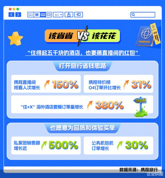 针对理性消费,旅游从业者也推出更实惠的套餐产品。价格优惠、长有效期、不约可退的酒店套餐产品受到消费者青睐,携程数据显示,2023年“住+X”国内酒店套餐订单同比增长超过70%,海外酒店套餐订单同比增长380%。多家航空公司也推出跨境随心飞、机票盲盒、机票秒杀等产品。