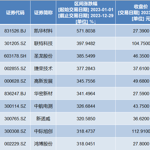 A股2023年收官:过半个股全年收涨,北交所凯华材料成最牛股