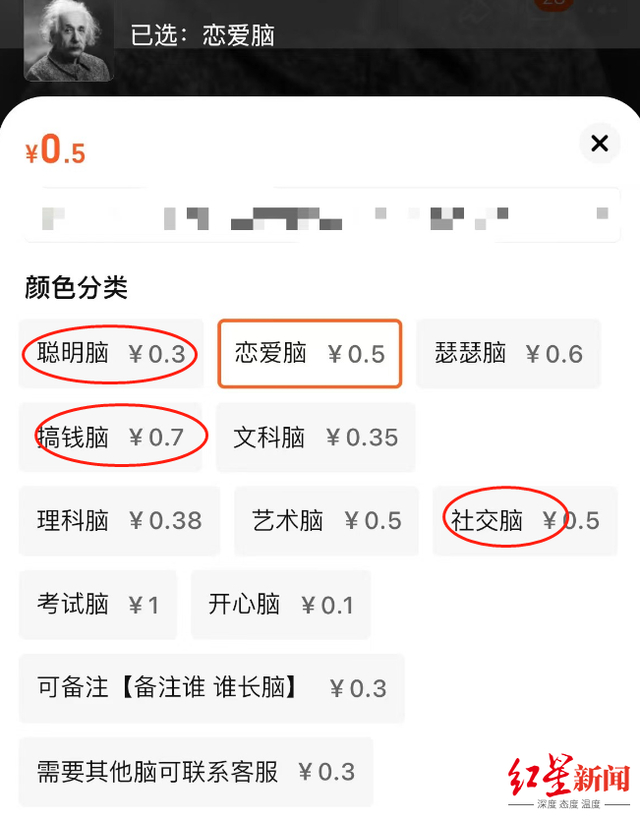 当然,电商销售的不仅仅是让人“变聪明”的大脑。记者在多个平台看到,类似“恋爱脑”“社交脑”“搞钱脑”等虚拟产品在商家的包装下层出不穷。其中一家店铺的列表显示,“考试脑”单价最高,为1.0元;其次为“搞钱脑”,单价0.7元;“开心脑”单价最低,为0.1元。