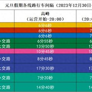 元旦假期地铁行车计划来了