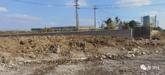 目前,苏州绿岸地块西侧的土地被挖走0.5米左右的泥土或混凝土,上面覆盖1.5米左右的泥土。图中围墙背后为苏州绿岸1号地块,高层幕墙玻璃建筑为8号地块上的商务楼。 《等深线》记者 程维 /摄
